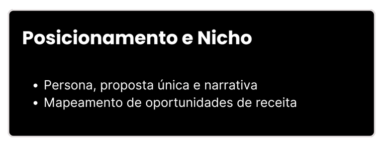 Me deu clareza de posicionamento e um plano simples para executar.”